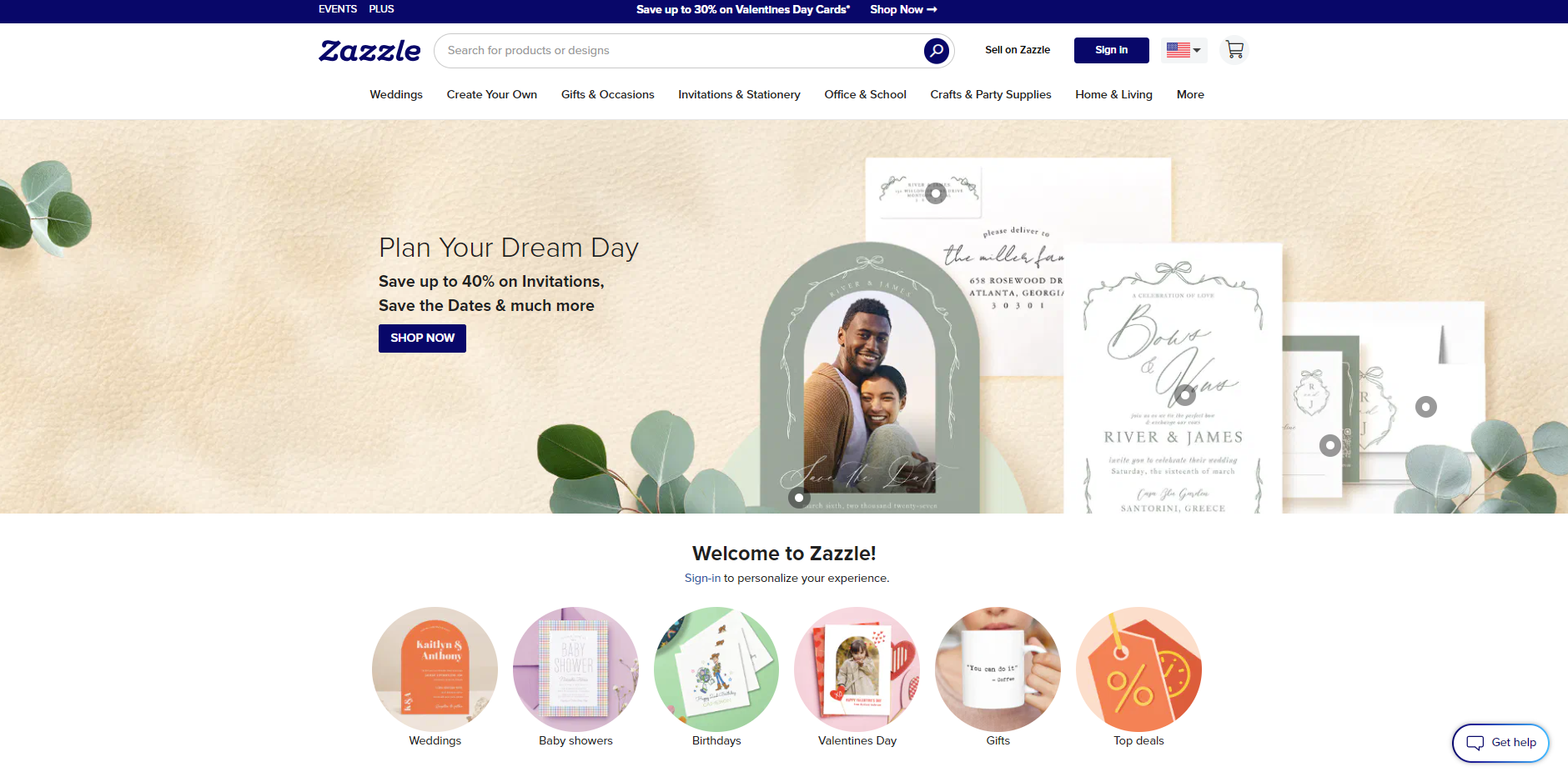Zazzle provides invitation designs in both printed and digital versions made by independent artists.