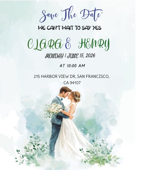 Save the Date for the wedding of Clara and Henry. Ceremony at 10:00 in the morning followed by a light brunch. Formal invitation with RSVP details to follow.