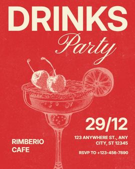 Drinks invitations are commonly used for after-work drinks, cocktail evenings, happy hours, casual bar meetups, house drinks nights, and small celebrations with friends or colleagues.