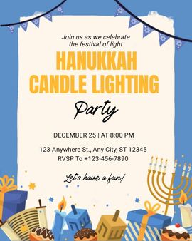 Hanukkah invitations are commonly used for family dinners, candle-lighting gatherings, community celebrations, children’s parties, and casual get-togethers with friends.