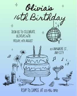 3. What should I include on a Sweet 16 birthday invitation?