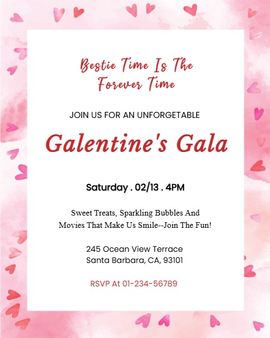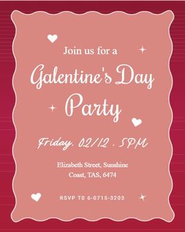 Valentine’s Day invitations are commonly used for romantic dinners, couples’ parties, Galentine’s gatherings, classroom celebrations, and themed get-togethers with friends.